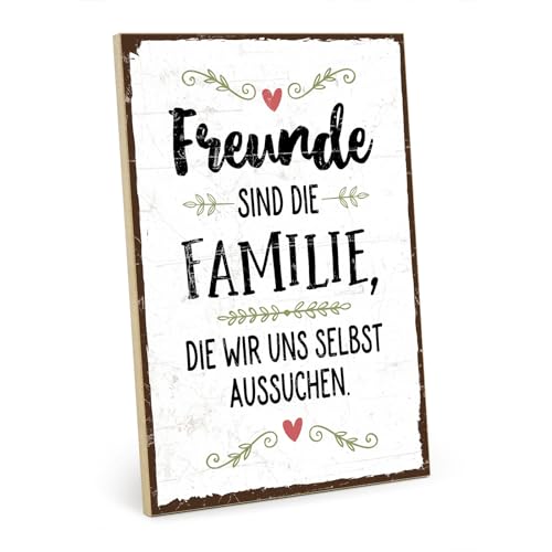 TypeStoff Holzschild mit Spruch - FREUNDE - FAMILIE ZUM AUSSUCHEN - Vintage Schild als Geschenk und Dekoration - HS-00605