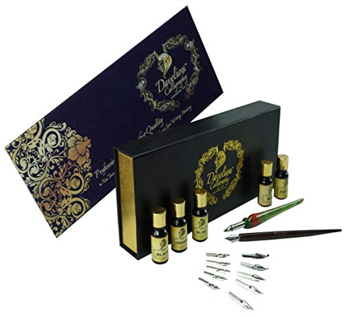 Daveliou Kalligraphie Set – 19 Teile – GRATIS Glasgriff – 12 Federn & 5 Tinten