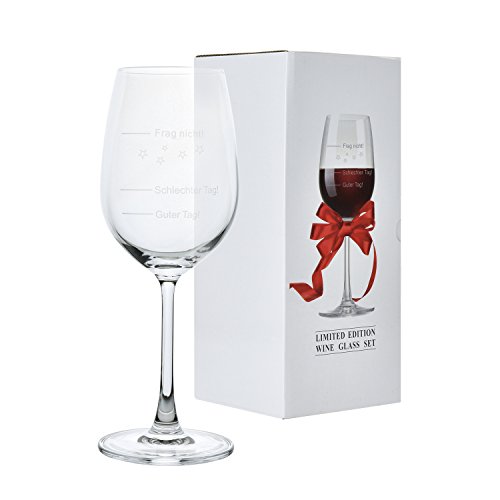 Weinglas Guter Tag!, Schlechter Tag! - Frag Nicht! 420ml Rotweingläser | Weißweinglas | Stimmungsglas | Premiumglas mit Laser-Gravur | Geschenkidee [Geschenkverpackung]