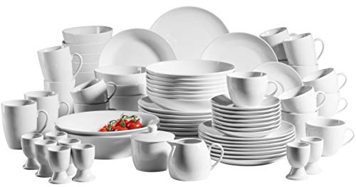 MÄSER 931610 Barca Umfangreiches Geschirr Set für 8 Personen, 68-teiliges Kombiservice in moderner randloser Form, Weiß, Porzellan