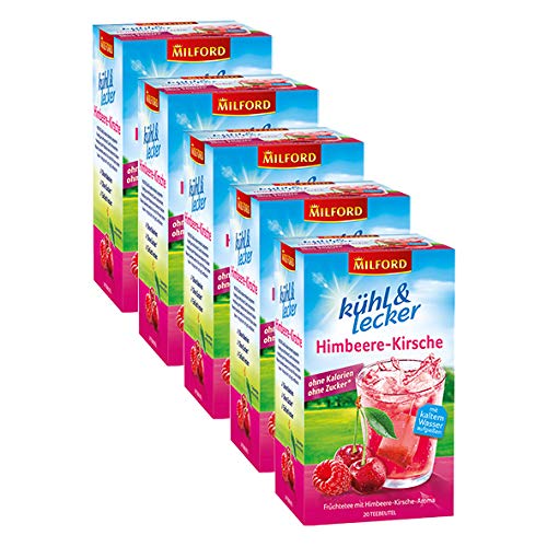 Milford kühl & lecker Himbeere-Kirsche, 20 Teebeutel, 5er Pack