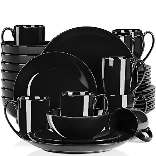 Tafelservice porzellan, LOVECASA SWEET 32-teiliges Kombiservice bunt, Ess Geschirrset für 8 Personen | Speiseteller, Tassen, Dessertteller und Schüsseln, Schwarz