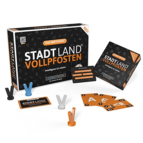 DENKRIESEN - Stadt-Land VOLLPFOSTEN® Brettspiel - Intelligenz ist relativ. + Kartenspiel Classic Edition