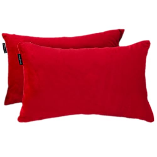 Emilie-Textil 2er Set SAMT Kissenbezug, Decorative Kissenhülle, Sofakissenbezug mit Verstecktem Reißverschluss, 14, Größen 40X40 / 45X45 / 50X50cm (2, Rot, 60X40)